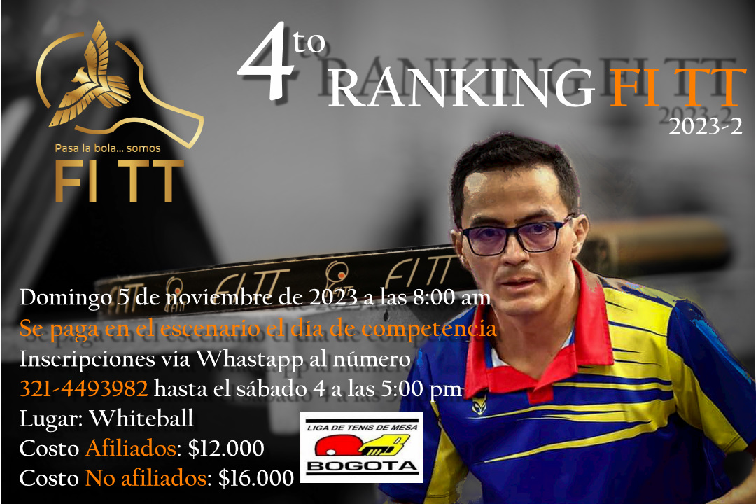 El ranking correspondiente al mes de Octubre contó con 49 deportistas de todas las categorías y niveles, desde los deportistas sub 9 hasta los atletas senior se dieron a la cita para medirse entre ellos en un emocionante torneo que se divide en dos categorías premiando a los 4 primeros de la primera categoría, a la mejor mujer del torneo, y a los dos primeros de segunda categoría. Al mismo tiempo se realiza una tercera categoría que es sub 9, reconociendo y fomentando la competencia para estas futuras promesas del tenis de mesa.